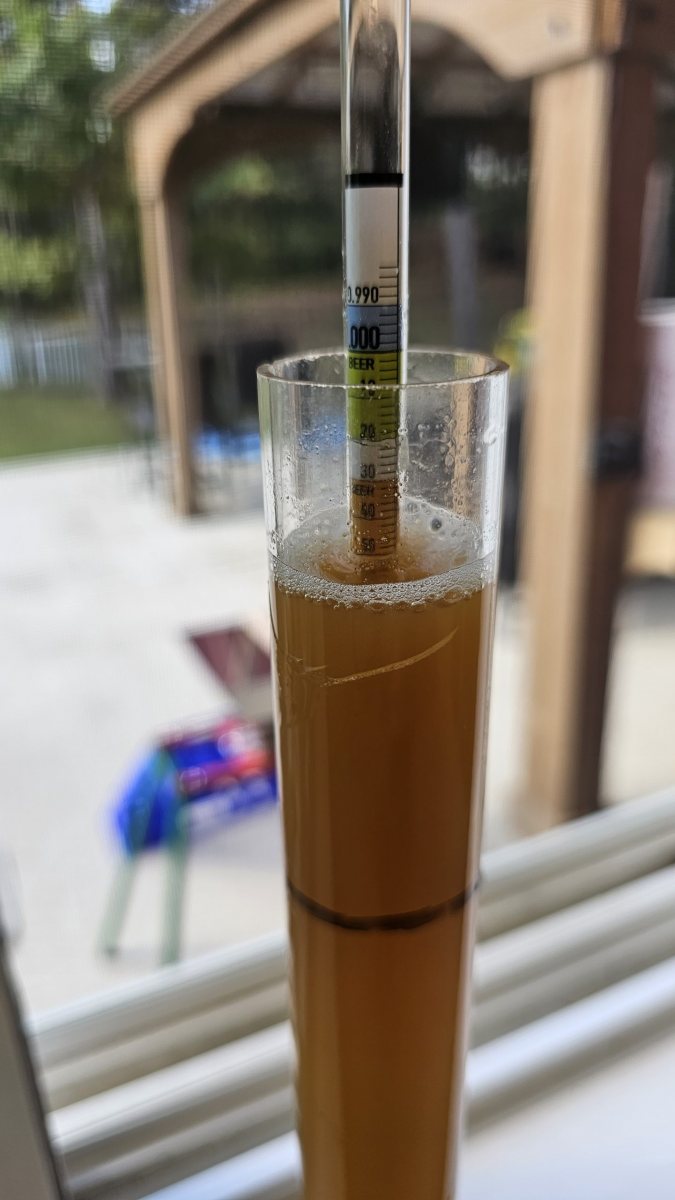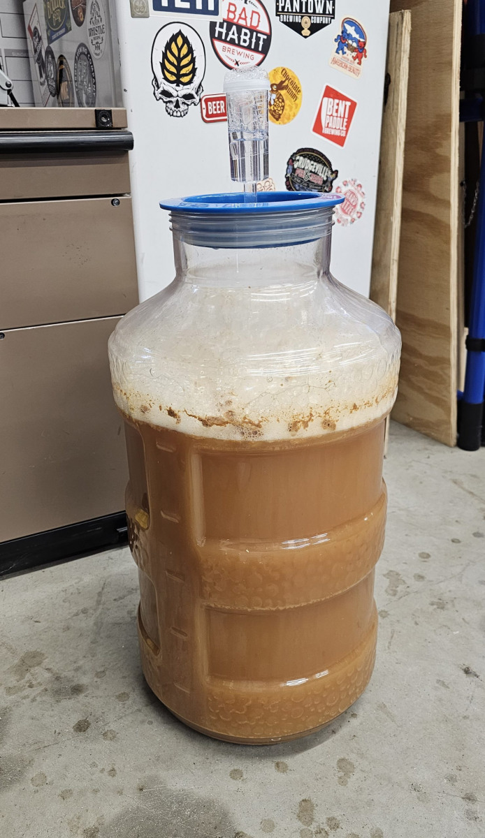The original gravity of the raw apple juice was only at 1.040, a bit low for what I want to hit around ABV (around 5.5-6%) so I boiled up 1.5 lbs of light DME (dry malt extract), added that to the juice, which bumped up the O.G. to 1.052, and pitched the yeast (dry) with the nutrients and let’er rip.