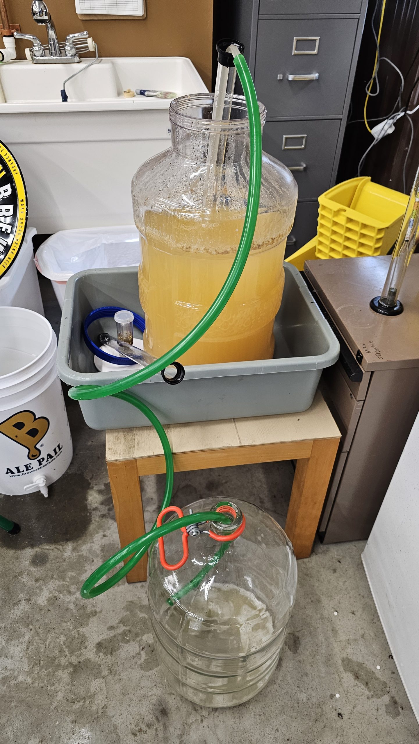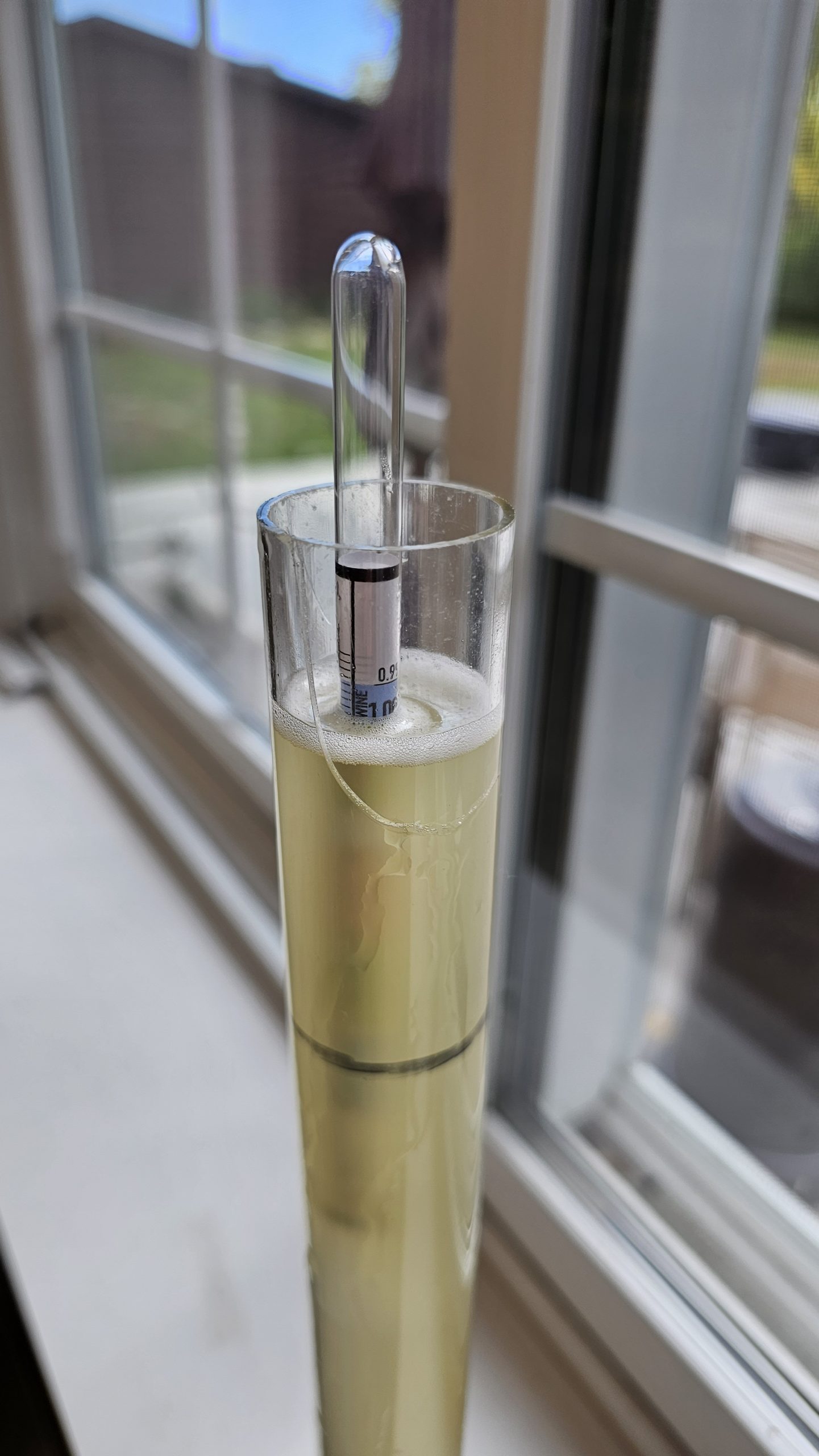 This one finished a much paler, straw colored yellow. I’m wondering if there’s something at work regarding tannins as well. I’ll have to do some research to be sure. I’m assuming that has something to do with the age of the apples/starch content between the two batches, and when I added the pectic enzymes. I’m going to periodically check these to see when the funk has faded and then on to back sweeteneing and kegging.